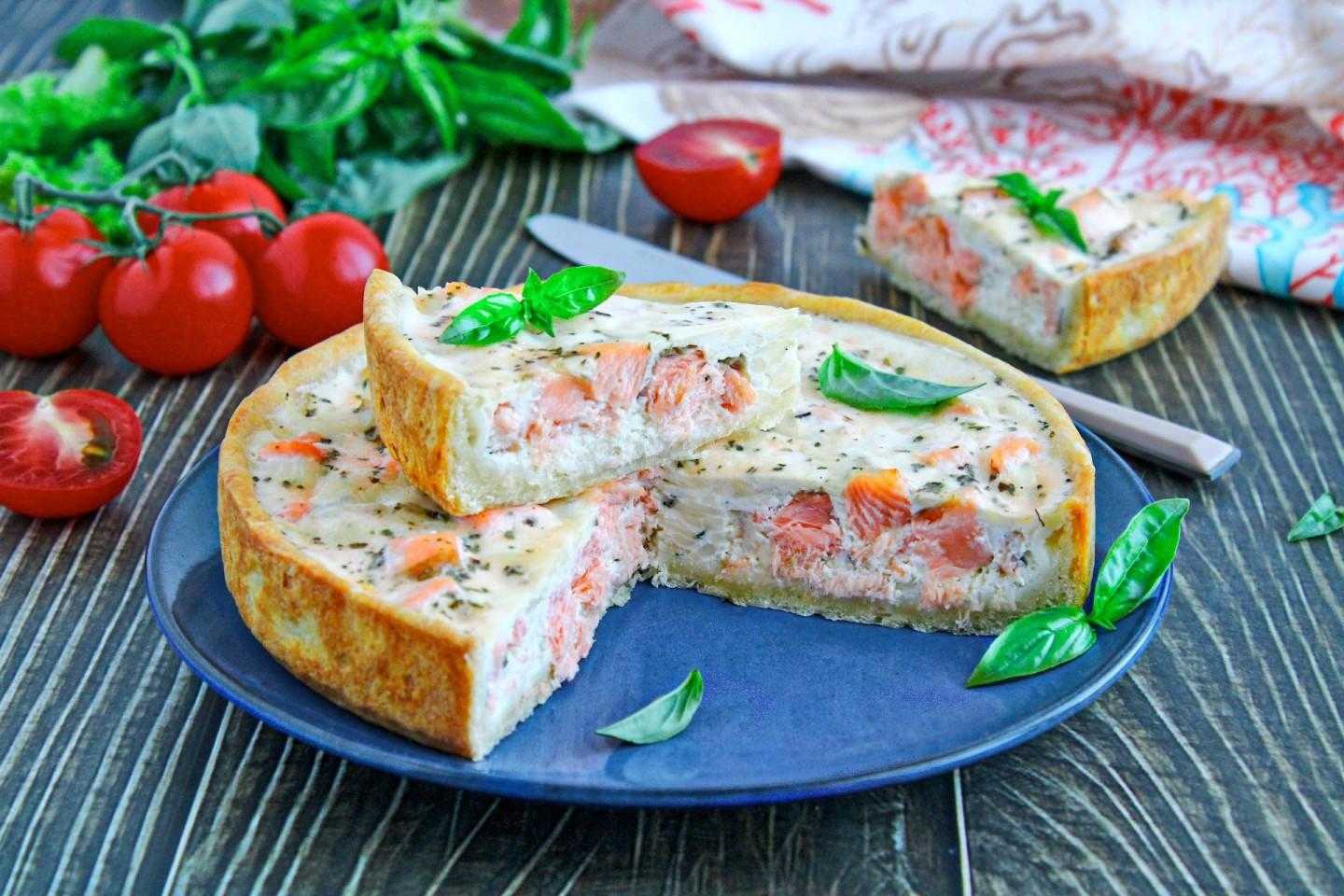 Удачное сочетание тонкого песочного теста и кусочков филе в нежной сливочной заливке делает пирог с красной рыбой вкусным и в теплом, и в остывшем виде. А готовить очень просто!