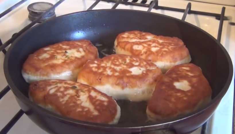 Пирожки с яйцом и зеленым луком жареные на сковороде из дрожжевого теста