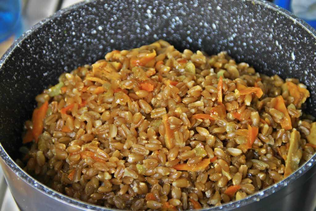 Полбу хорошо промойте, залейте 2 стаканами холодной воды и оставьте на 1,5 часа.