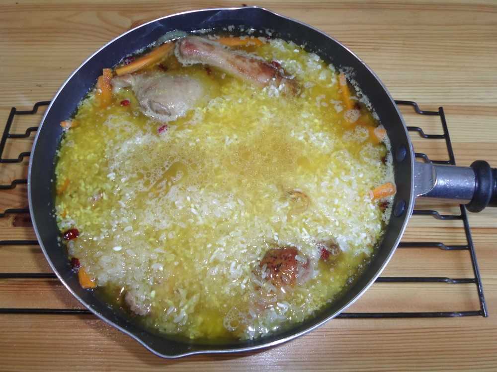 После этой процедуры стоит обжарить мясо до золотистой корочки, добавить морковь с луком и жарить еще минут 10. Затем добавить рис, предварительно промытый несколько раз, чеснок и специи, накрыть крышкой и наслаждаться необъяснимым ароматом по всей местности.