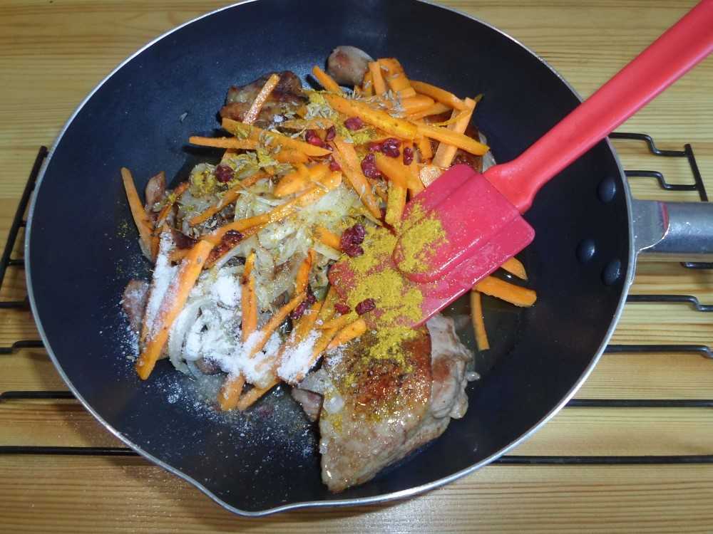 Подошло время добавить специи и пряности. Мясо утки великолепно сочетается с перцем и чесноком, поэтому вы можете добавить и их. Но лучше всего использовать уже готовую смесь карри, в которой есть все необходимые специи. Не забывайте посолить. Соль нужно брать крупную, желательно без йода.