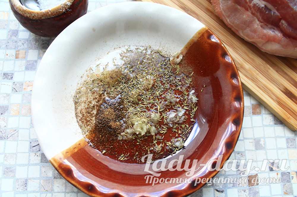 Чеснок и соль обязательны, а специи можно взять готовые к мясу, добавив ещё свежемолотый чёрный перец. Можно составить свою смесь из любимых пряностей.