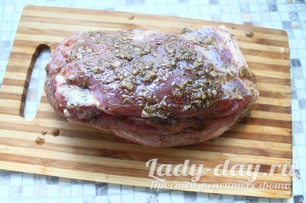 Перед тем как запекать мясо в духовке, необходимо почистить его от остатков загрязнений (шкуру поскоблить ножом), далее помыть в проточной воде и вытереть насухо.