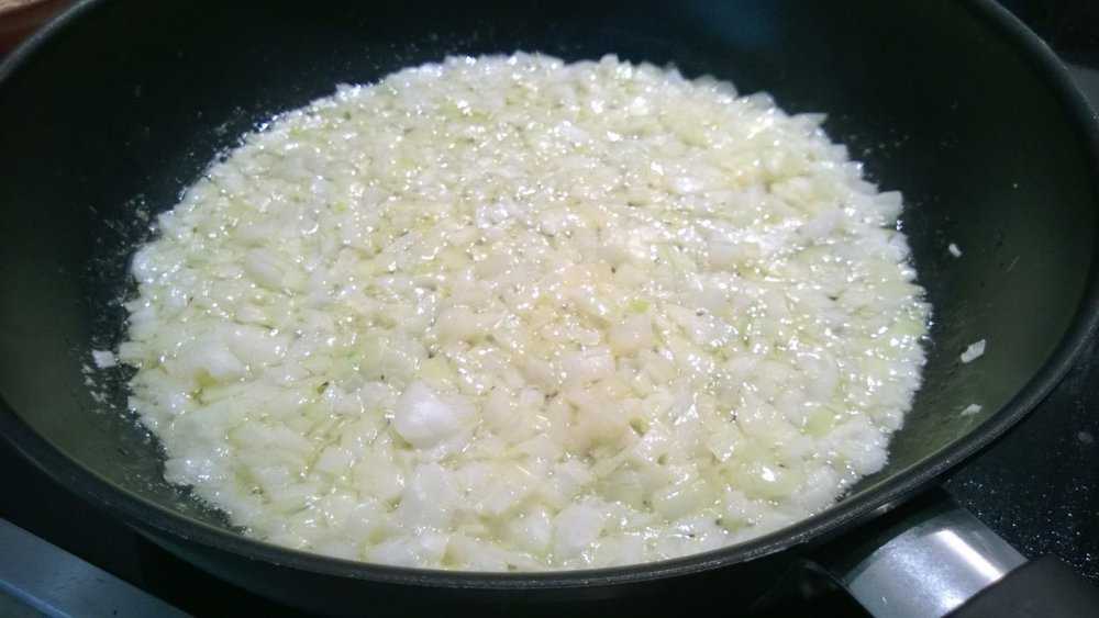 На следующий день готовим гречку: отвариваем. Нарезаем лук и прожариваем его в масле. Смешиваем гречку с луком.
