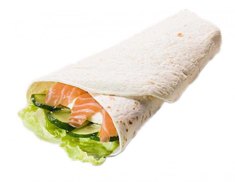 5. Можно употреблять тортилью сразу, как холодную закуску. Либо выкладываем на гриль и слегка прогреваем лепешку. Стараемся не передерживать, иначе начинка может потечь.