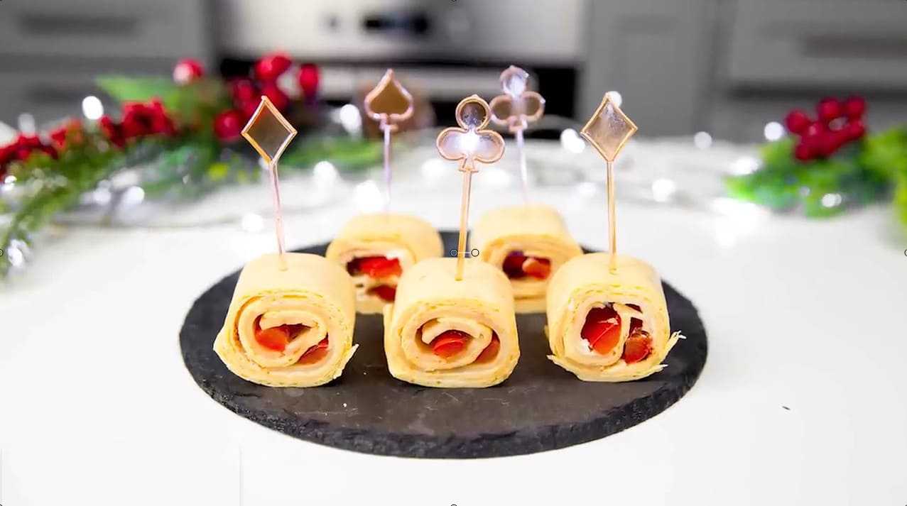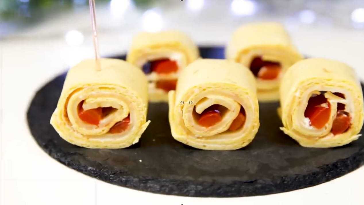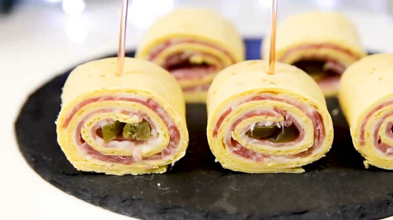 Рулетики из тортильи с ветчиной, яйцами и огурцом