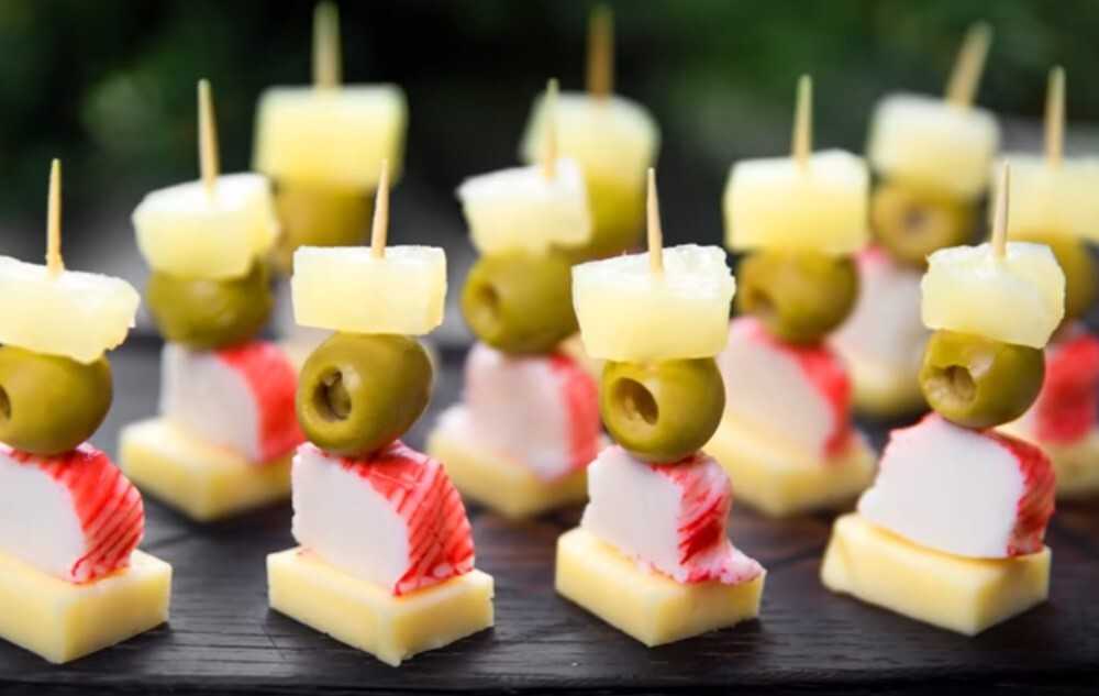Канапе с оливками и крабовыми палочками