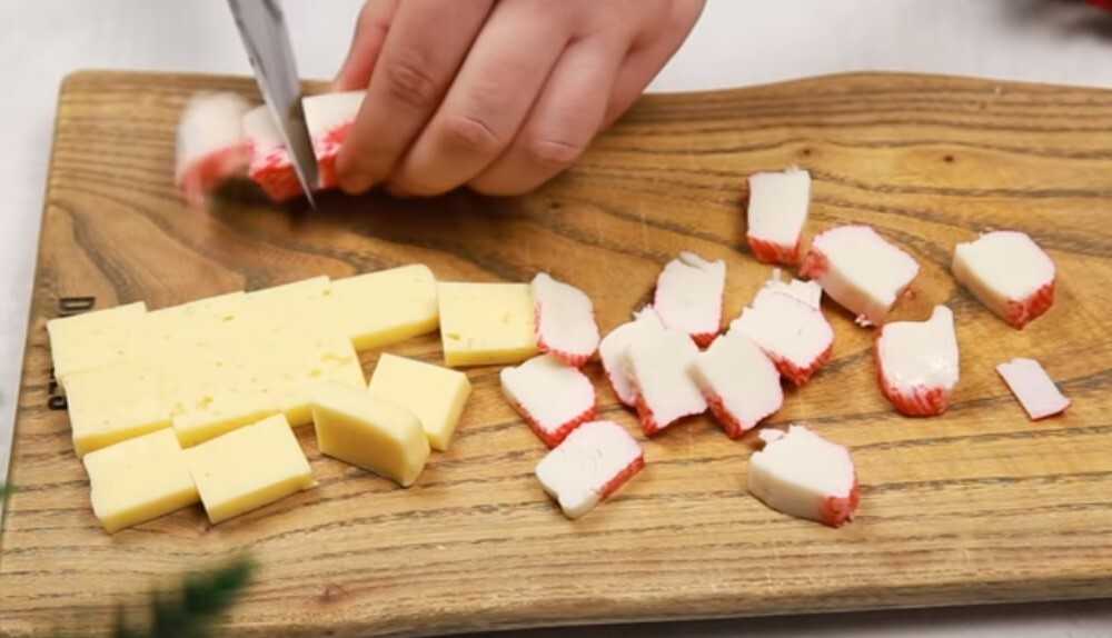 - Крабовые палочки — 3-4 шт;