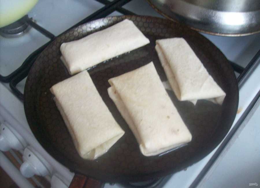 - Выбирайте специи без соли. На сковороде с антипригарным покрытием обжариваем лаваш. В сковороду предварительно добавить немного растительного масла. Напомнь, что мы не готовим пирожки во фритюре. Это всего лишь легкая обжарка, целью которой является слегка подрумянить и подсушить лаваш, при этом сыр внутри лаваша должен успеть расплавится. Итак, постоянно под крышкой в сковороде обжариваем лаваш с двух сторон. Огонь небольшой.