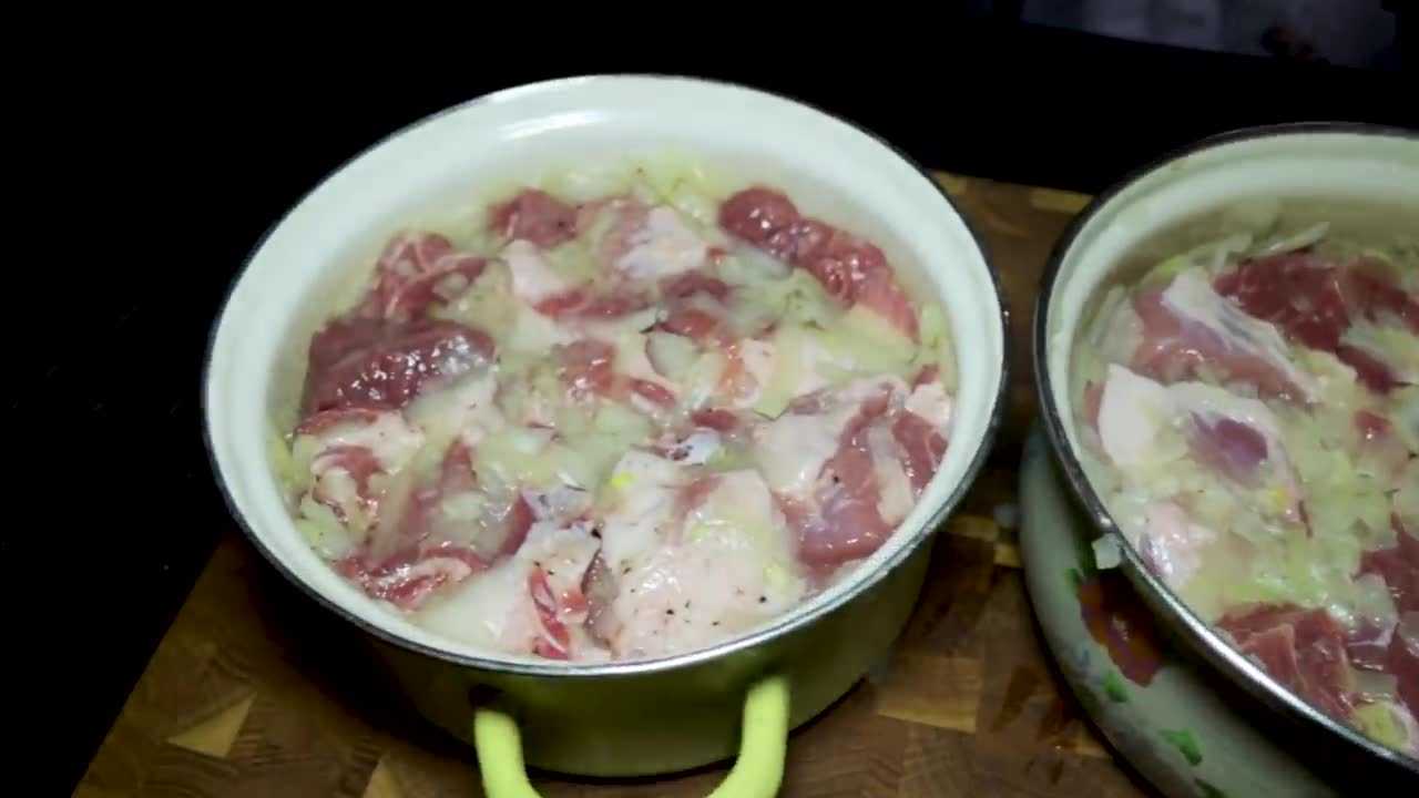Минеральная вода должна полностью покрывать подготовленное мясо!