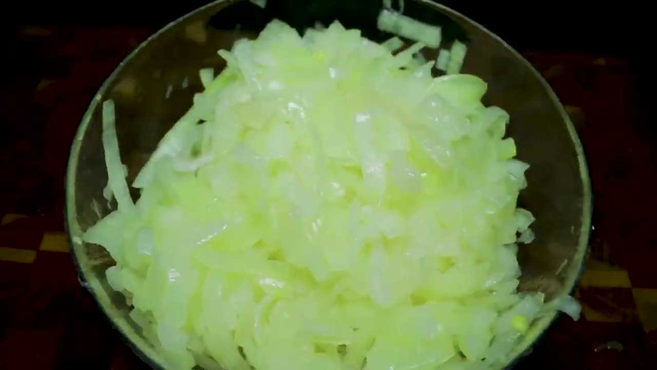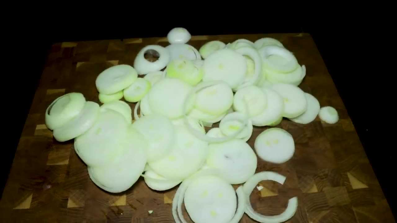 - Сначала необходимо подготовить лук, его очищают от шелухи и нарезают кольцами или полукольцами средней толщины.