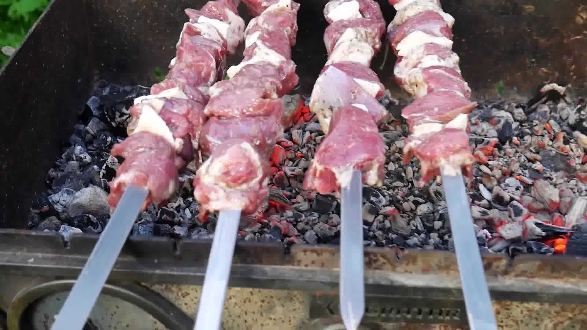 4. Заранее разожгите огонь, дождитесь появления жара, а не огня. Поставьте заготовки над углями, периодически переворачивая шампура.