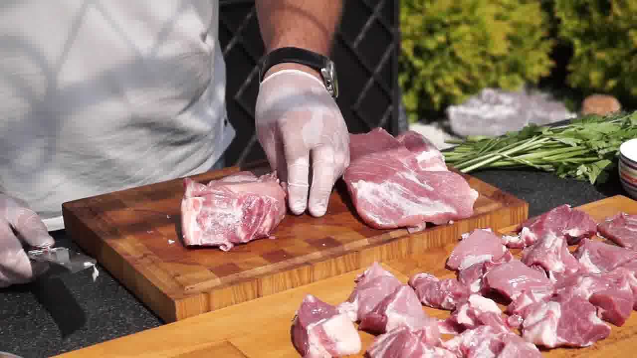 Для компании из 5-ти человек берем 3 кг свинного мяса. Обычно для пикника покупают мясо в пропорции 500 гр на 1 человека, но представьте, что на столе кроме овощей и зелени больше не будет ничего. Выбираем мясо свежее, но не парное. Особая «фишка» здесь — мясо из любой части свиной туши. В случае, если вы отдаете предпочтение только ошейку и не любите балык, попробуйте в этот раз приготовить именно его. Он вас поразит сочностью, аппетитностью, мягкостью и ароматом.