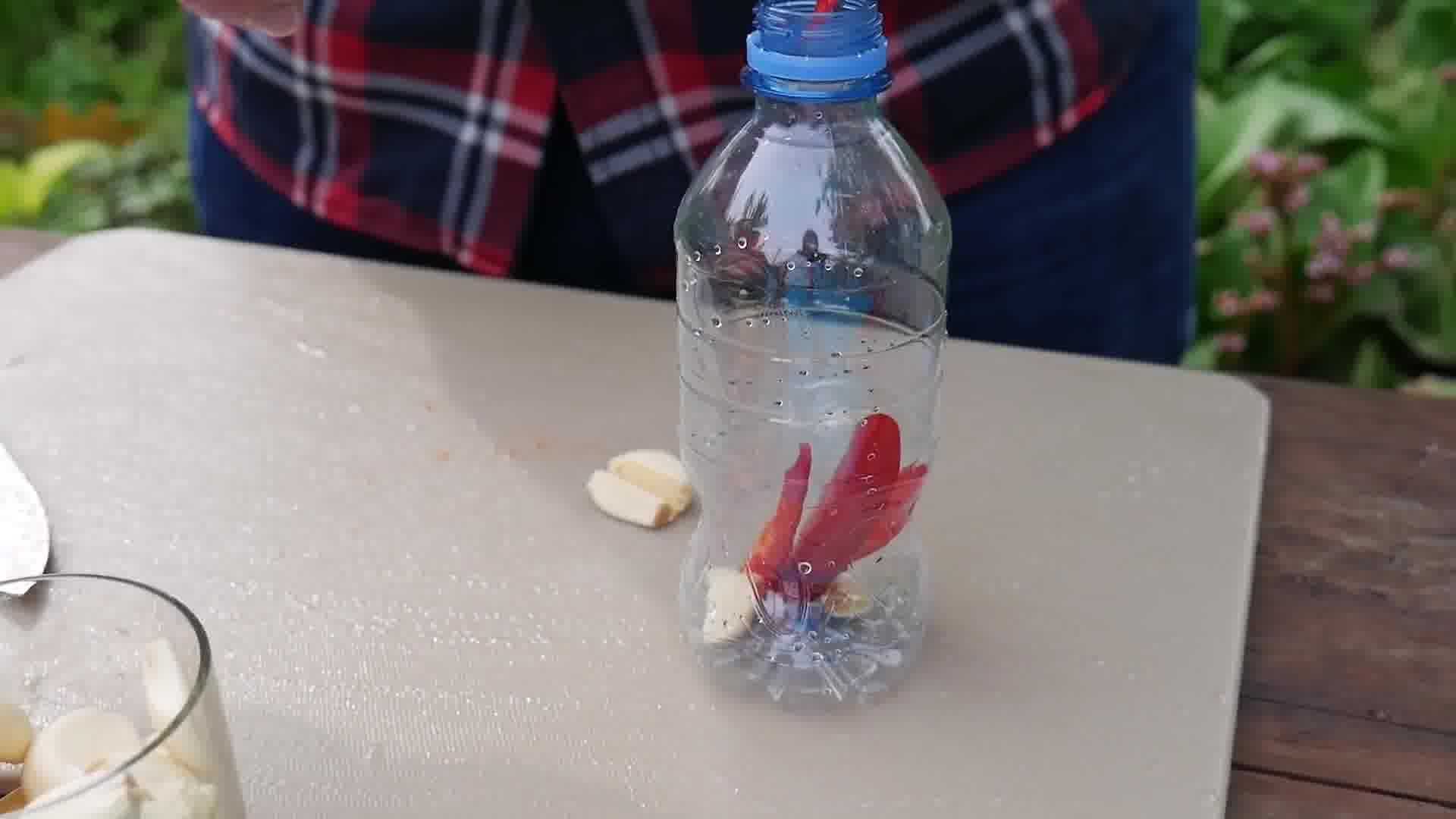 Возьмем небольшую бутылку, например 0,33 мл. Нарежем перец чили и чеснок на кусочки и уложим в бутылку вместе с перцем горошком и гвоздикой. Заливаем в бутылочку винный уксус, встряхиваем и даем настоятся пока мясо маринуется.