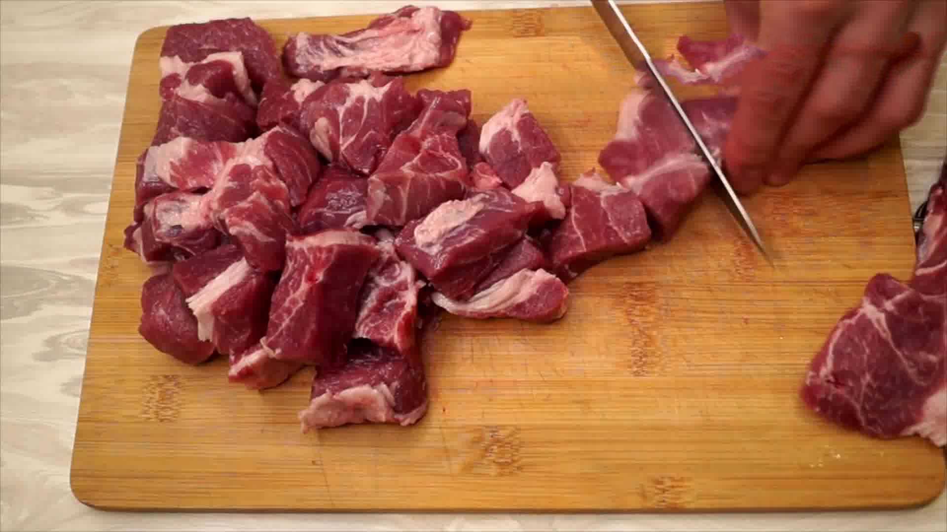 - Подготовьте мясо, нарезав его кусками нужного размера.
