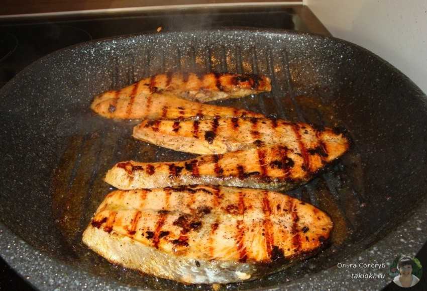 Если у вас сковорода гриль газ, в ней тоже можно пожарить семгу. Об особенностях приготовления читайте .