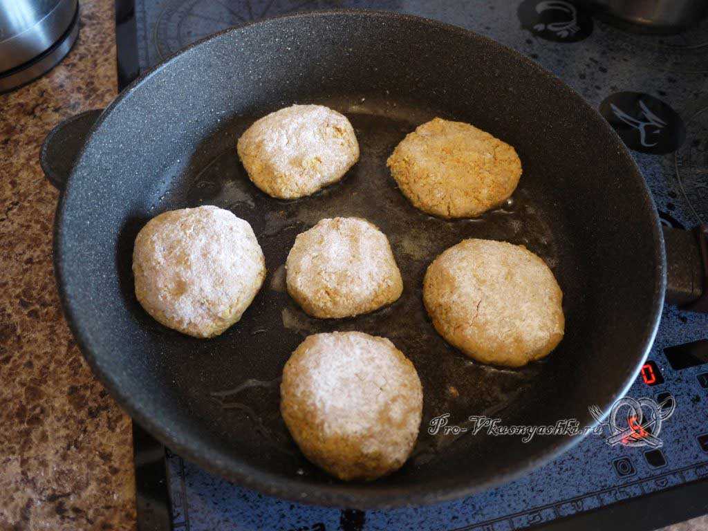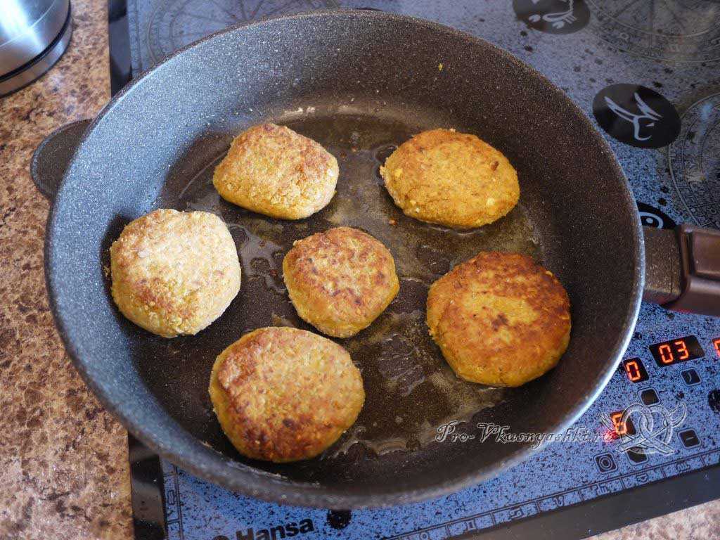 Теперь можно формировать котлеты и выкладывать на раскалённую сковороду. Обжаривайте их с двух сторон до золотистой корочки.