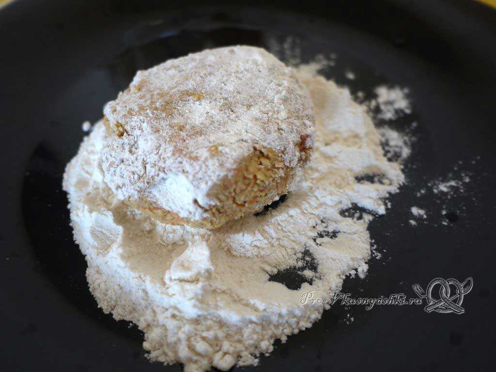 Из полученного фарша формуем котлеты и обваливаем их с двух сторон в муке.