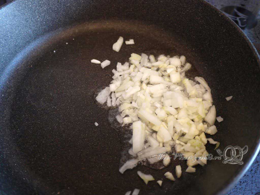 Обжариваем овощи на раскаленной сковороде с маслом около 5 мин до золотистого цвета.