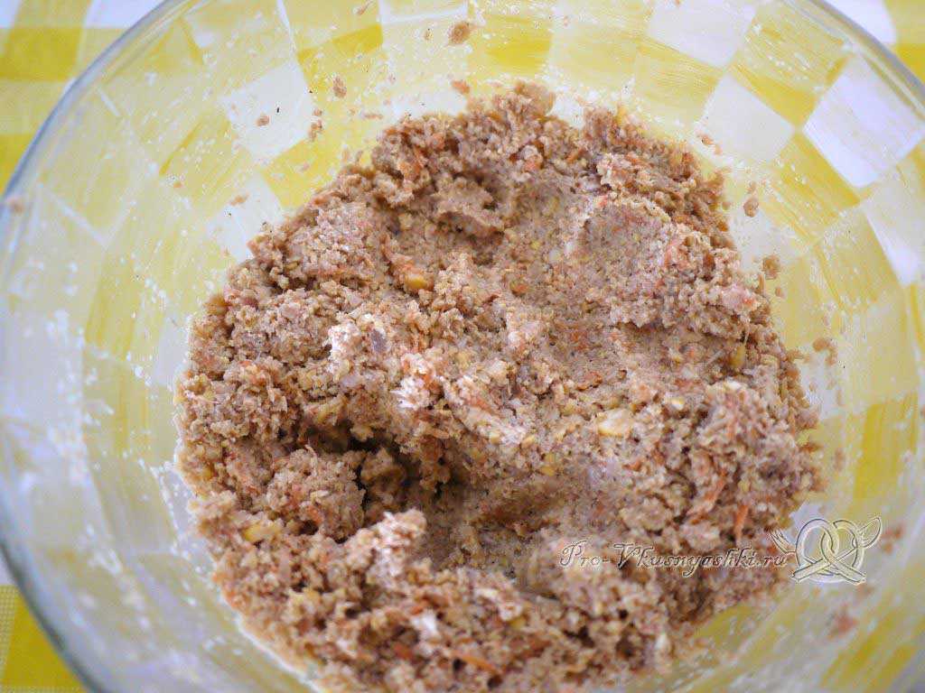 - Кладем 1-2 ст. л. просеянной кукурузной муки. Хорошо вымешиваем фарш до однородной массы. Формируем котлеты и обмакиваем в муку или панировочные сухари.