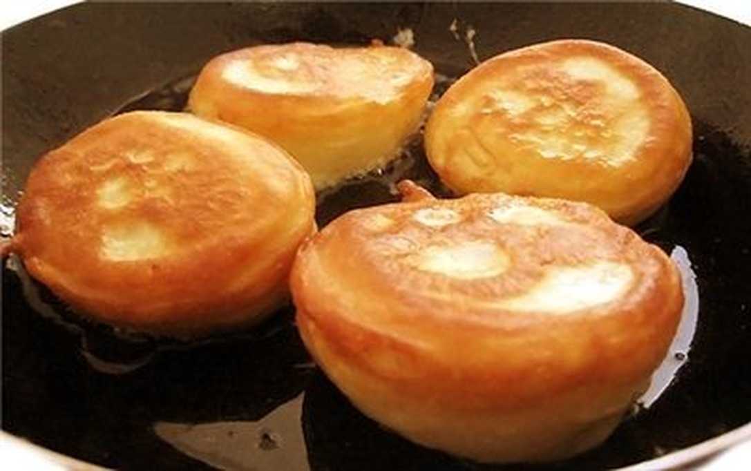 Обжарим их до румяной корочки и, помогая себе лопаткой, аккуратно перевернем на другую сторону. Изделия во время жарки должны подняться и увеличиться в толщине. Таким образом приготовим все изделия.