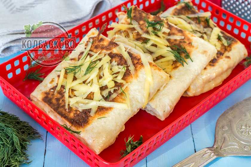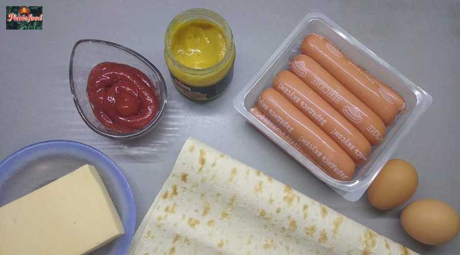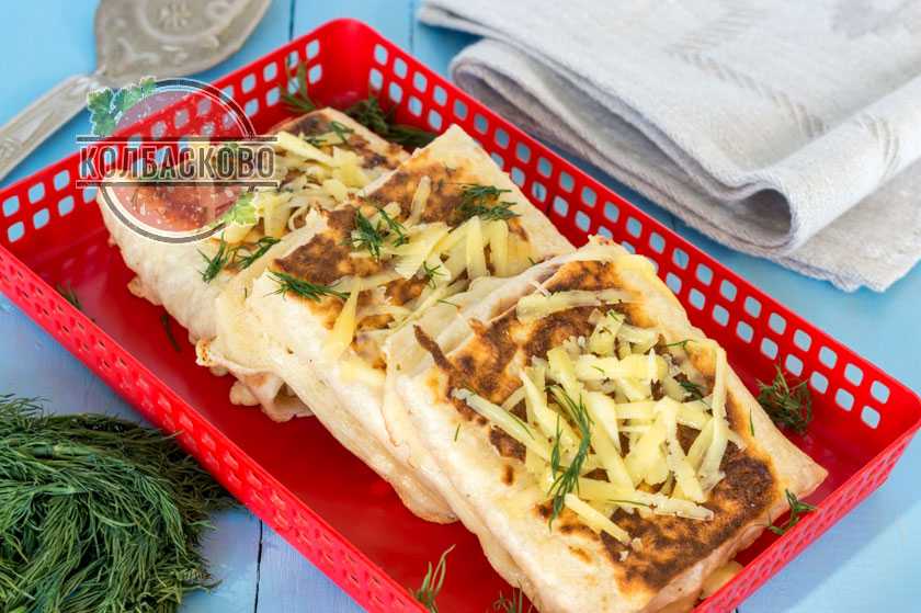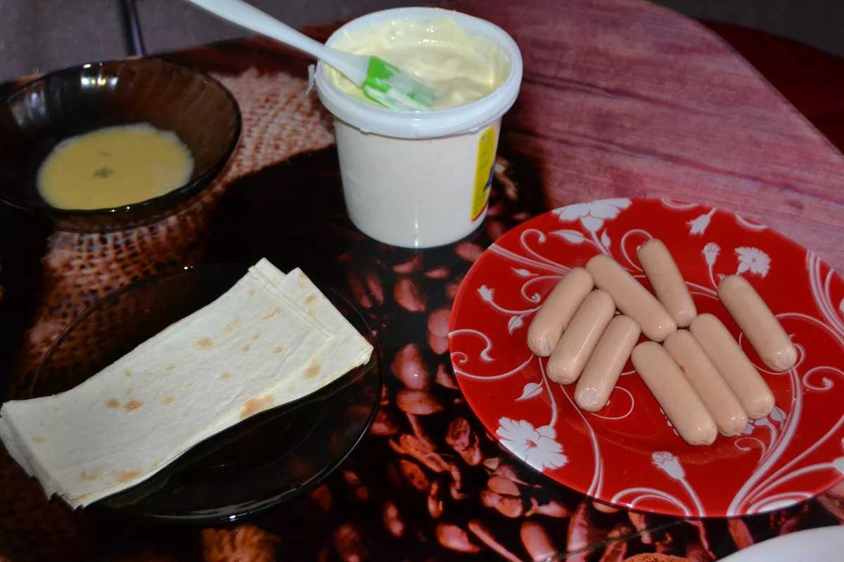 Сосиски с сыром и овощами в лаваше на сковороде: рецепт