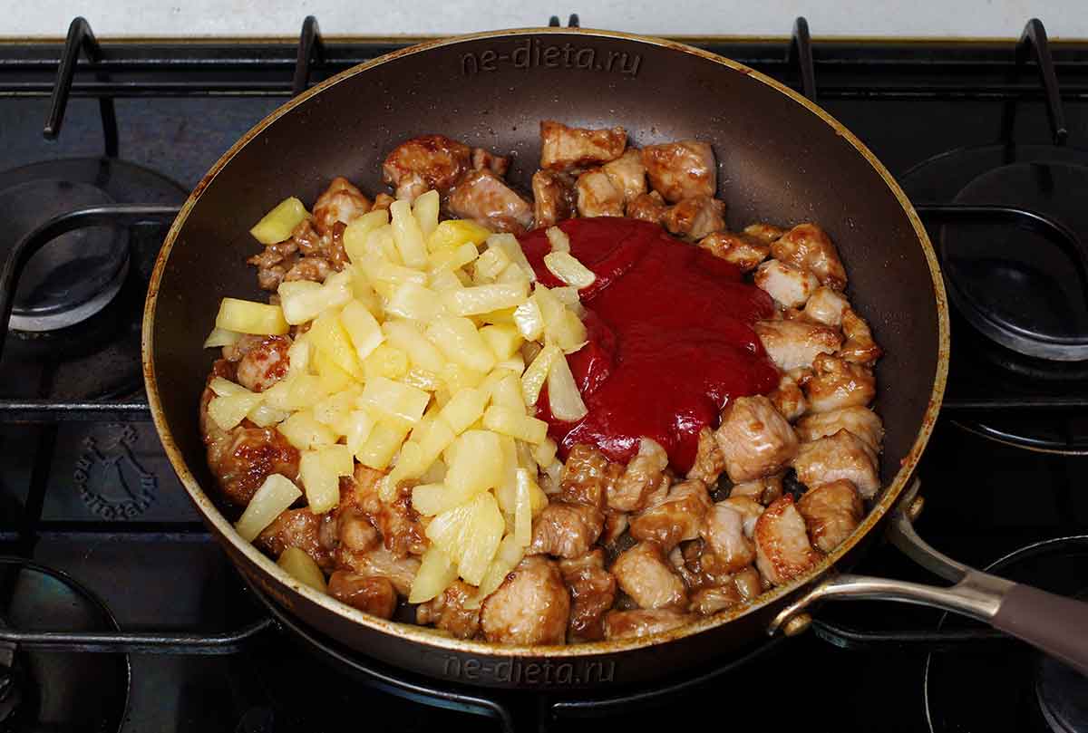 Как приготовить свинину с ананасом на сковороде — рецепт свинины в кисло-сладком соусе с пошаговыми фото
