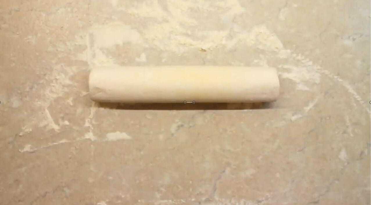 Аккуратно достаём наше тесто и начинаем формировать из него колбаску при помощи рук (заранее присыпав поверхность мукой).