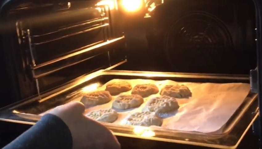 Вместо жарки их предстоит запекать. Настроить печь на 180 градусов и застелить противень пергаментом. Не смазывая бумагу разложить сырнички. Они приобретут аппетитный золотистый оттенок за 20-25 мин