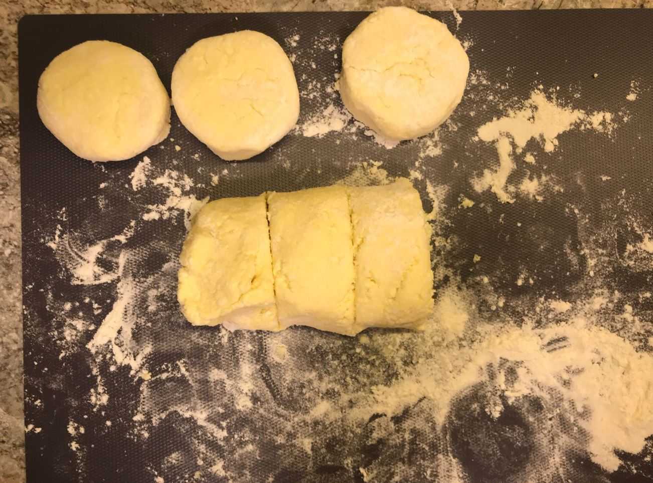 С помощью ножа разделите его на 6 равных частей и из каждой части сделайте форму сырника. На фото ниже сможете посмотреть как это выглядит.