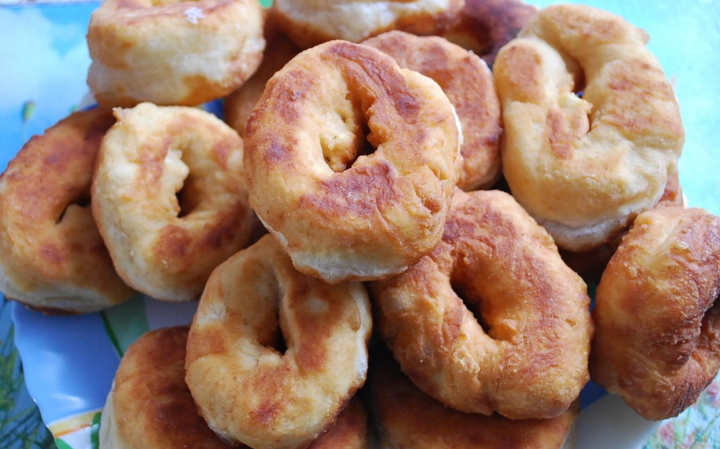 - Выкладывают заготовки в раскаленное масло отверстием вниз и жарят изделия до румяности с двух сторон.