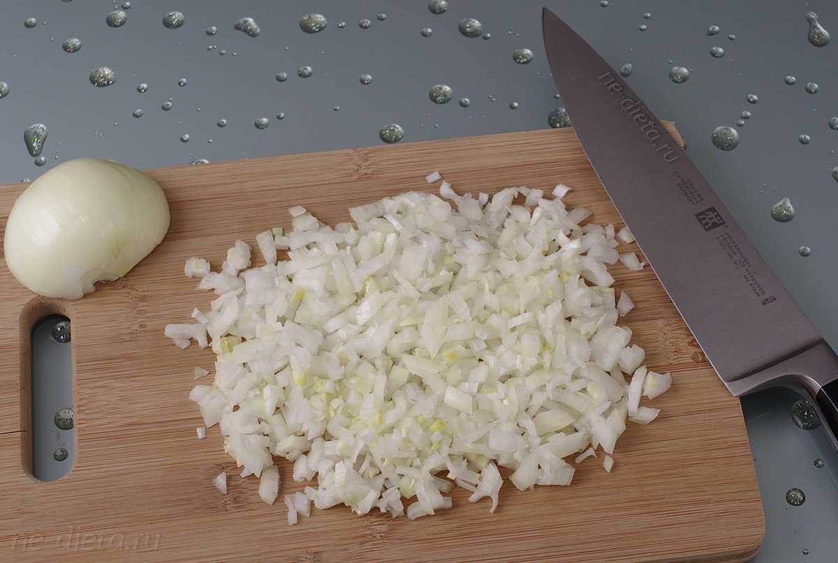 - Луковицы очищаем от шелухи и нарезаем небольшими кубиками.