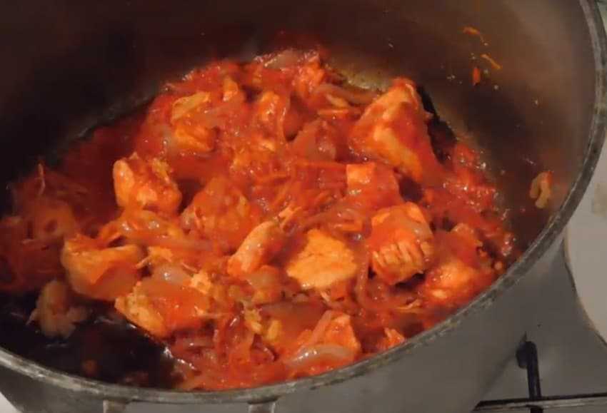 Как тушить капусту в кастрюле с курицей в томатной пасте?