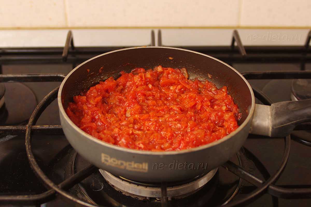 Вместо томатной пасты в зажарку можно также добавить 100 — 120 г любого кетчупа или томатного соуса на ваш вкус. Кроме того, для этого блюда можно использовать 400 г свежих или консервированных помидоров без кожуры, порезанных небольшими кубиками.