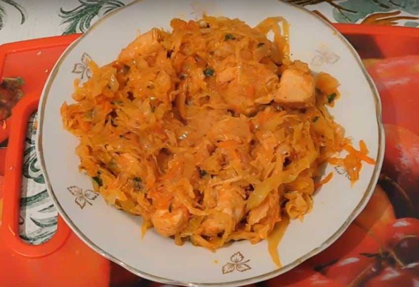 Хорошо сочетаются вместе мясо курицы и тушеная капуста. Рецепт этого блюда должен сохраниться в кулинарной книге, так как он выручит с ужином мужу, который вскоре должен прийти с работы. Сочный и нежный вкус капусты идеально сольётся в дуете с ароматным мясом курицы. Минимум продуктов, времени на приготовление, и лёгкое питательное кушанье будет готово.