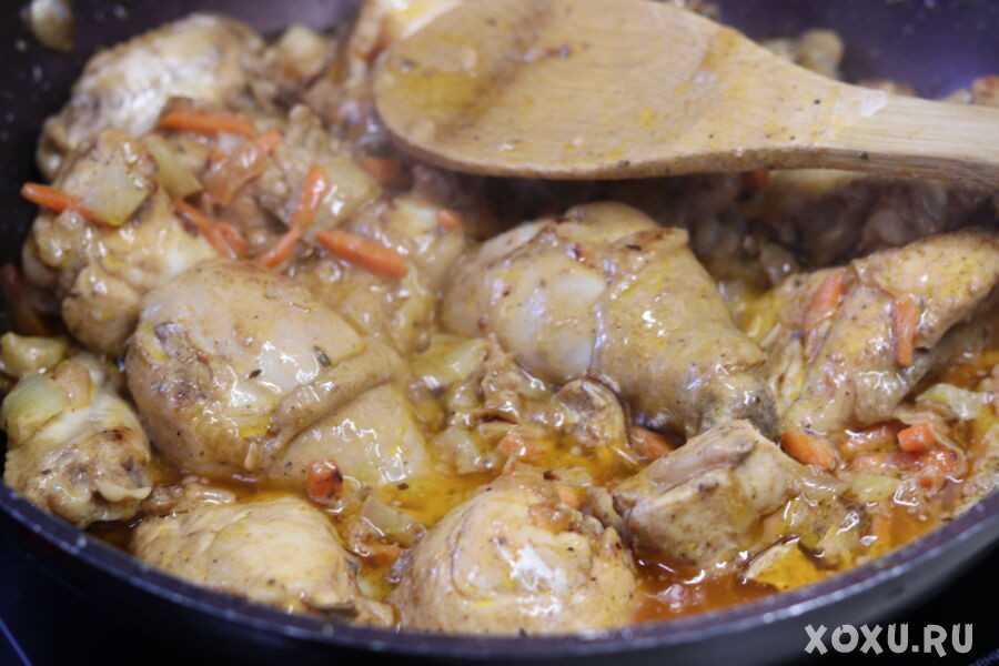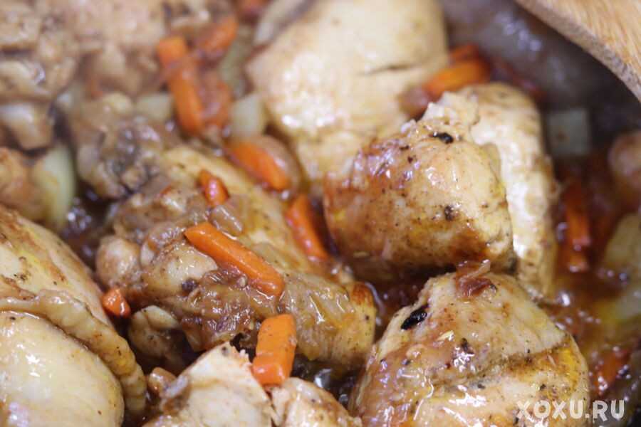 Нежное куриное мясо во время приготовления пропитывается ароматами приправ и овощей, поэтому блюдо получается не только сочным, но и очень вкусным.