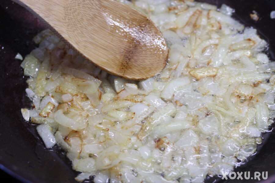 Огонь укрутила, минут за десять лук размягчился, отдал аромат маслу и мясу.