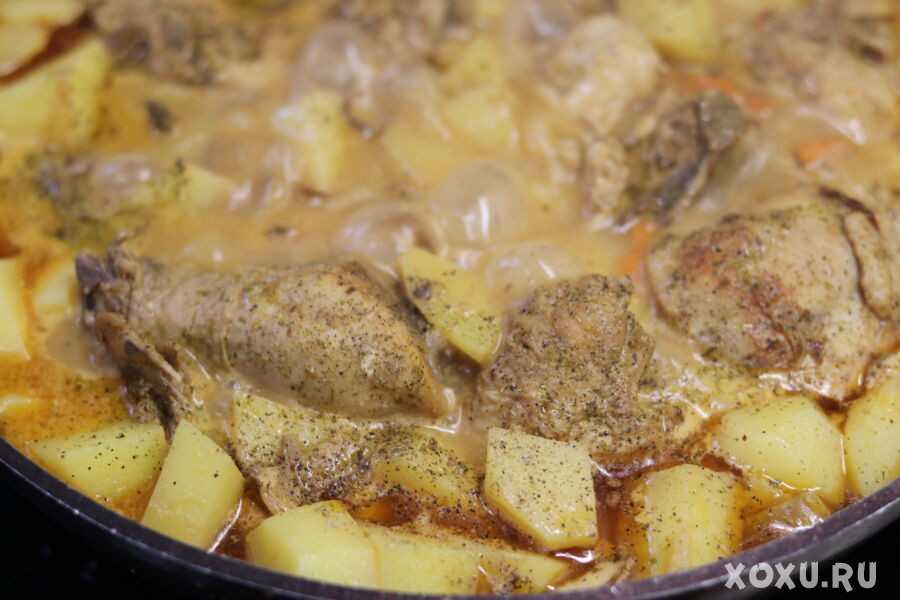 17. Как только картофель станет мягким, убирайте казан с огня. Настаивайте блюдо еще 15 минут.