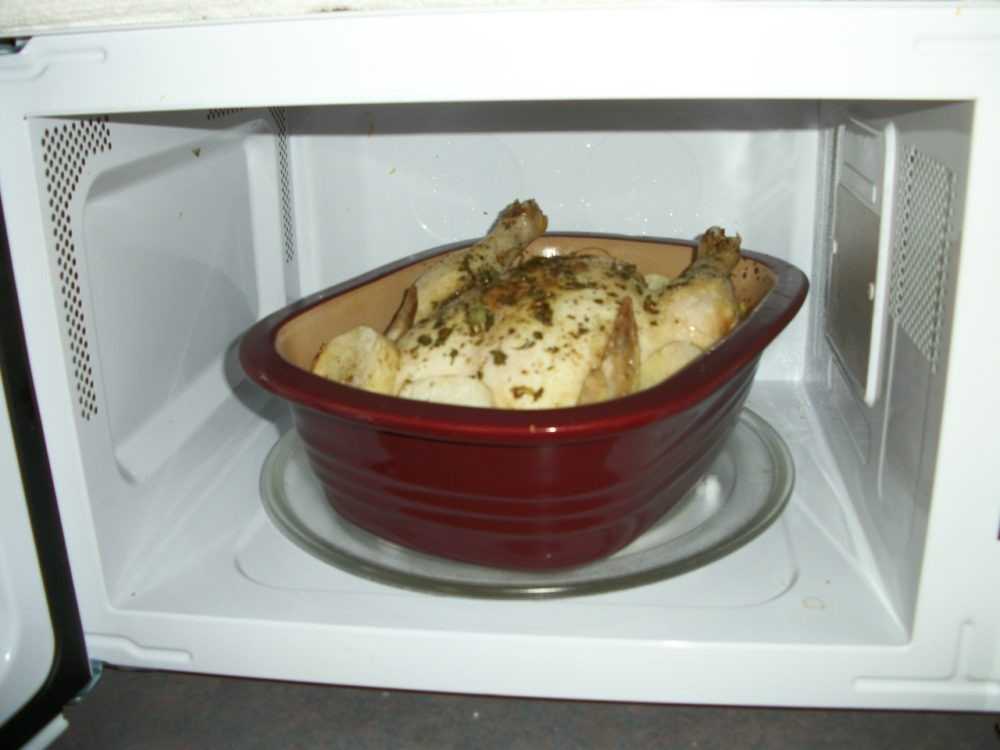 - Поставьте емкость в микроволновку и готовьте на средней мощности в течение 1 часа.