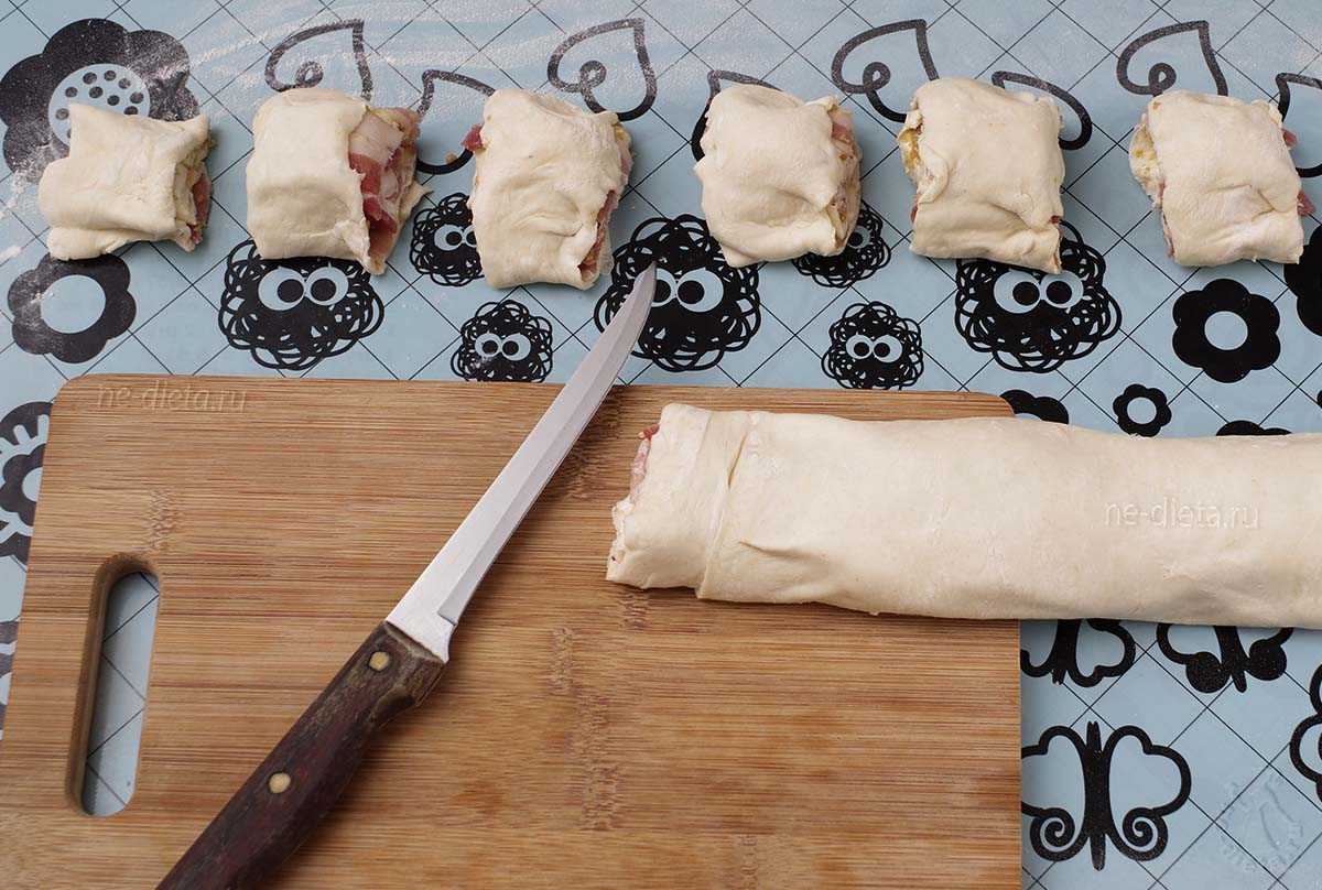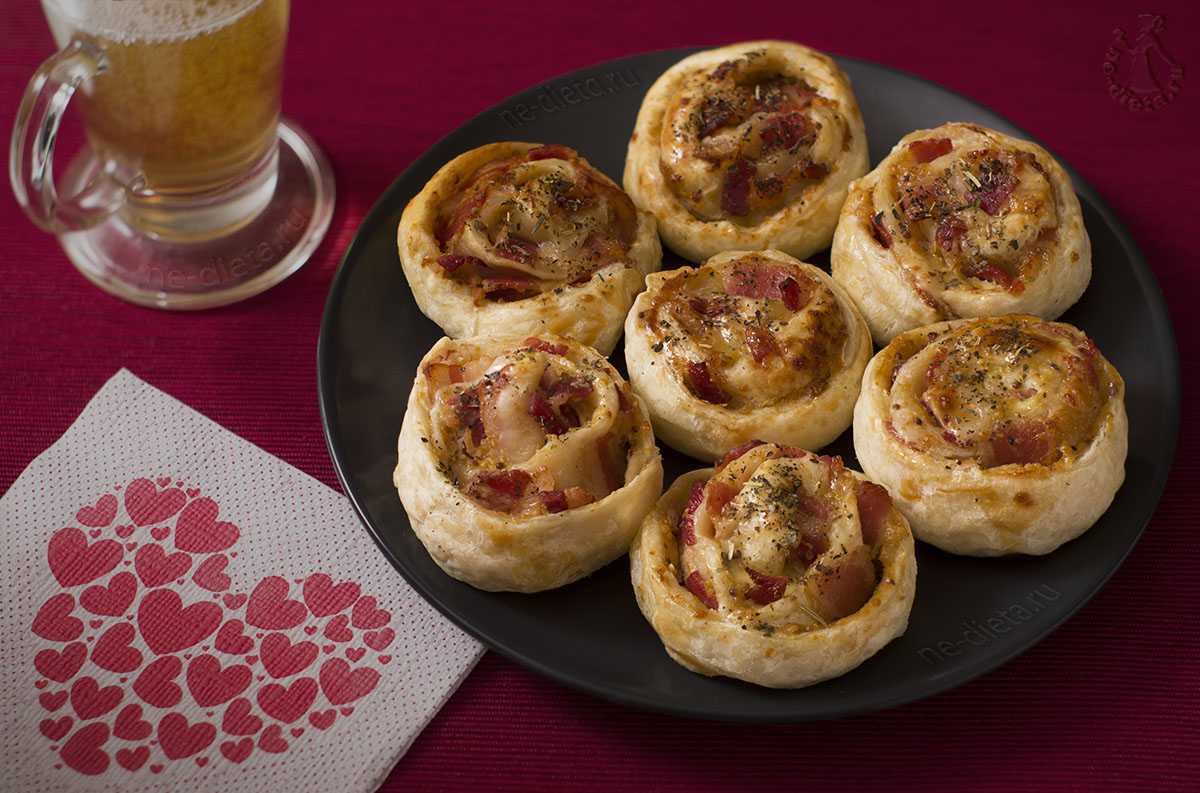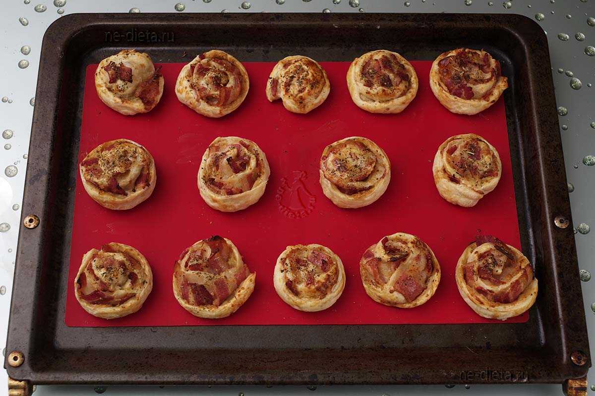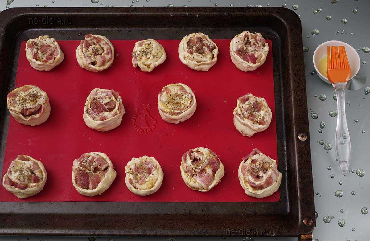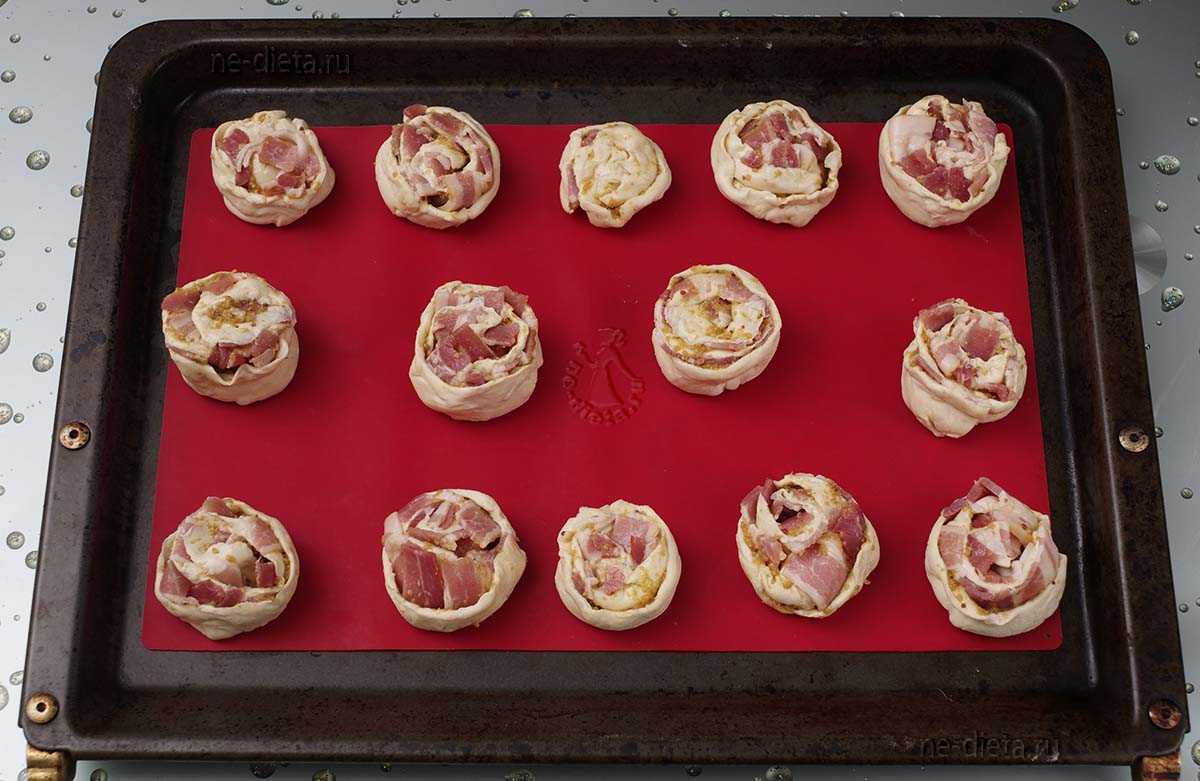 Розочки из слоеного теста с беконом — рецепт простой закуски из готового слоеного теста и бекона с пошаговыми фото