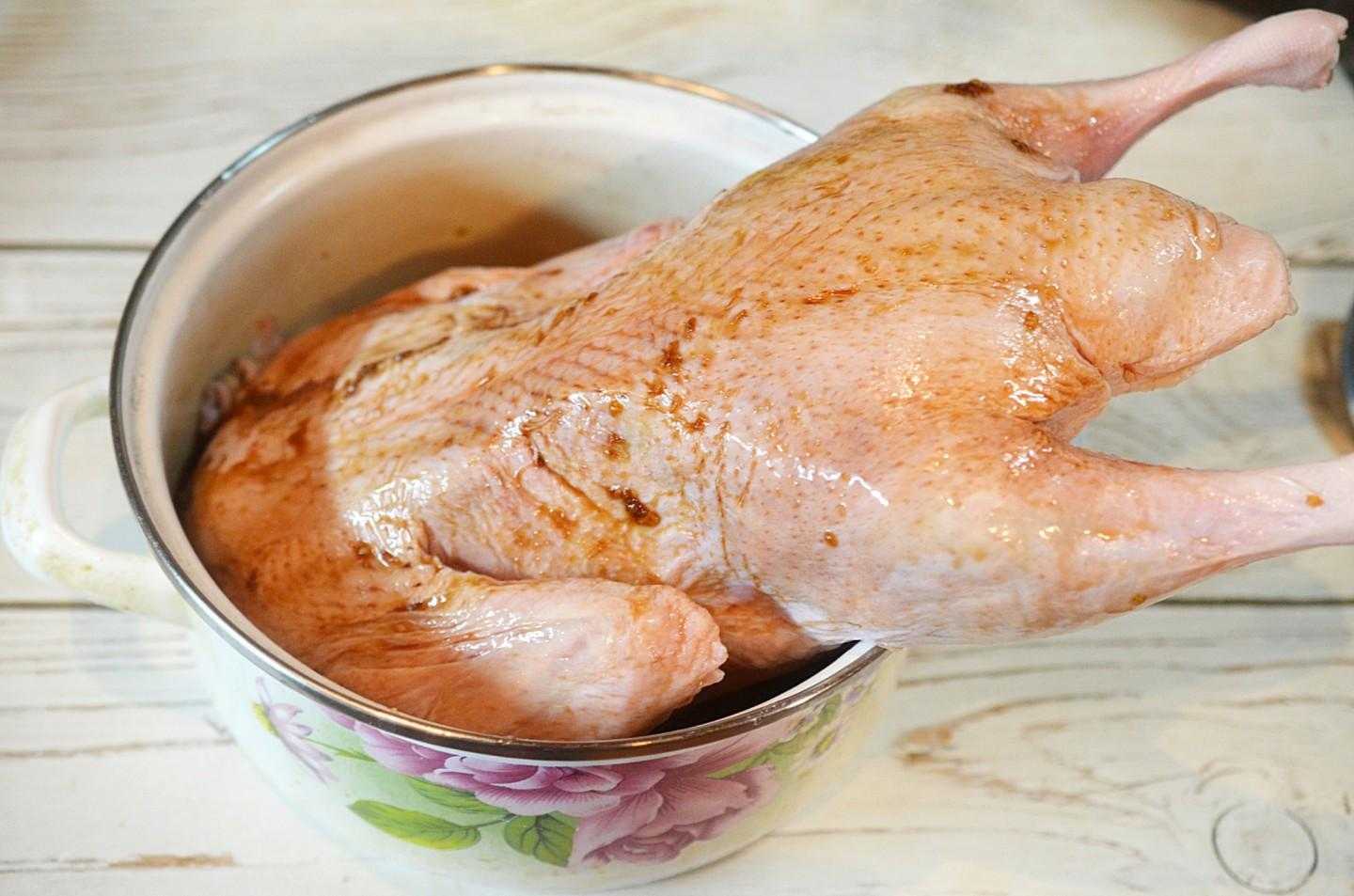 - Периодически переворачивайте утку, чтобы маринад равномерно проникал в мясо.