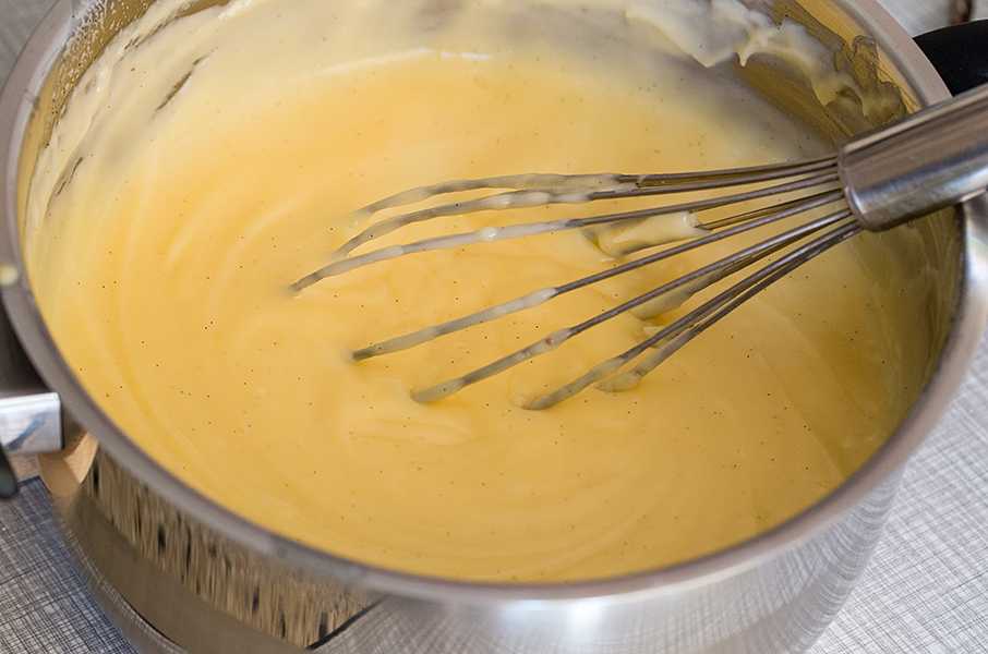 О классическом заварном долго рассказывать нет нужды — все о нем знают, любят и практически без проблем умеют готовить. Единственное, что пропорции для Наполеона в заварном креме будут несколько отличаться от обычного для того, чтобы получить менее густой крем, способный хорошо пропитать коржи.