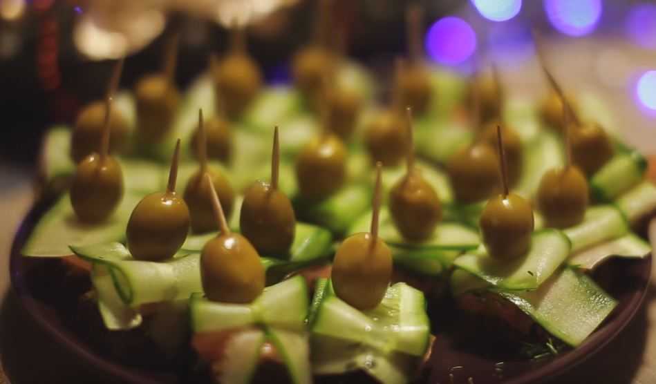 Такие бутерброды станут прекрасной альтернативой, дорогостоящим из красной рыбы. Канапе с оливками на шпажках оригинально выглядят и имеют пикантный аппетитный вкус.