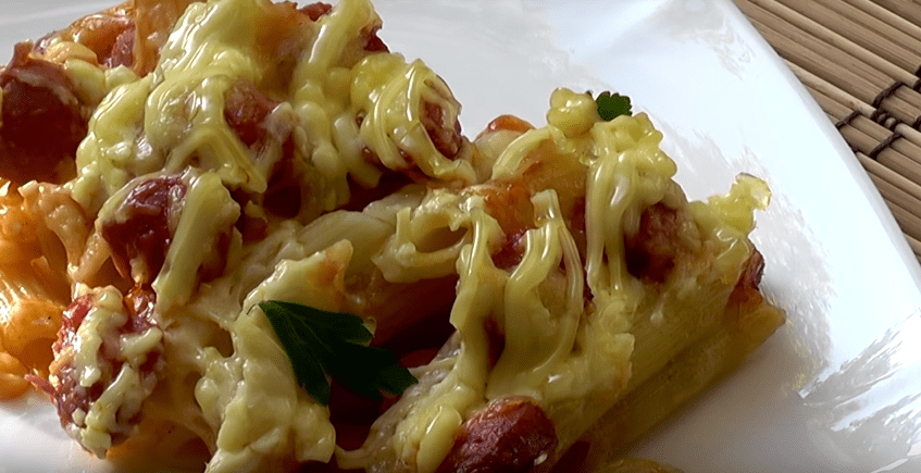 Быстрая макаронная запеканка с колбасой и сыром в духовке. Автор https://www.youtube.com/watch?v=WuthwRtOJuQ