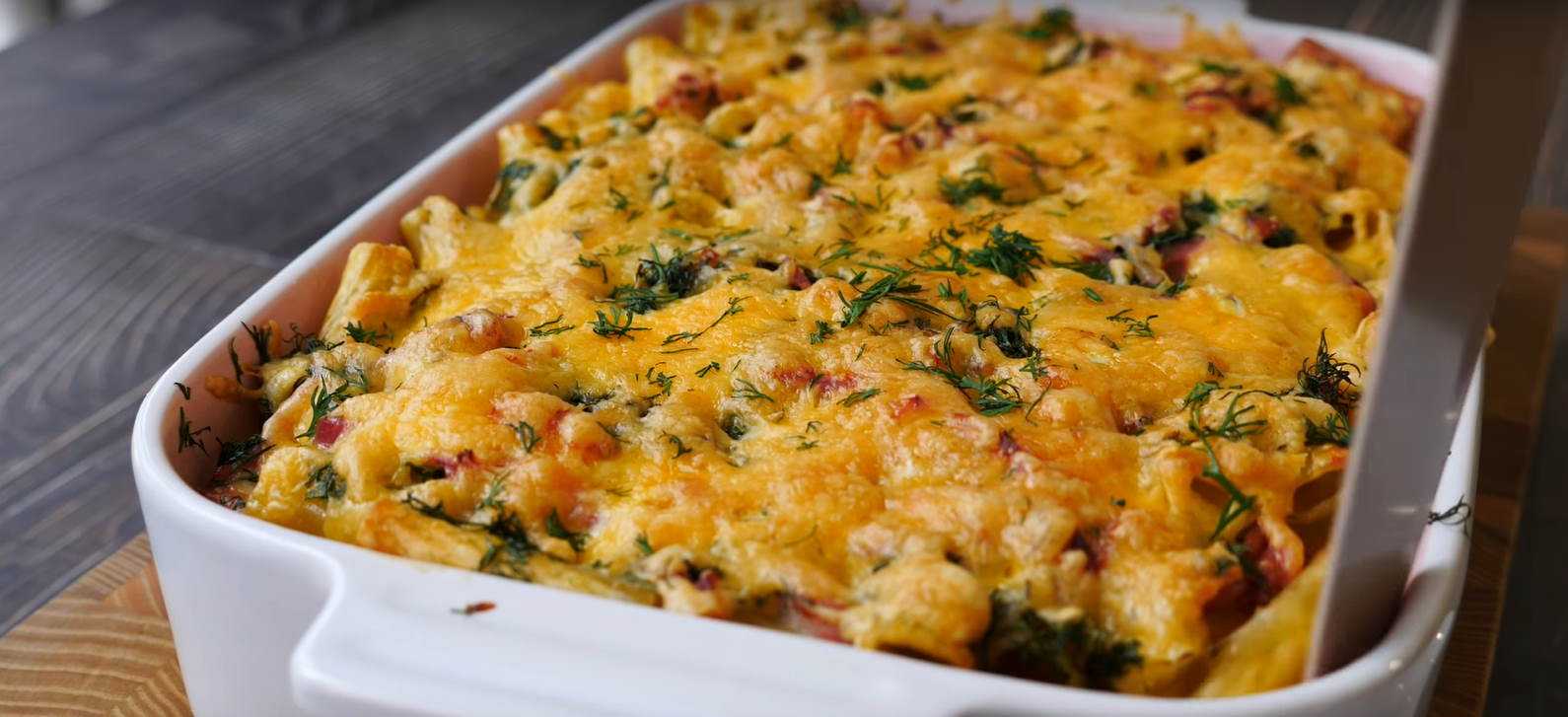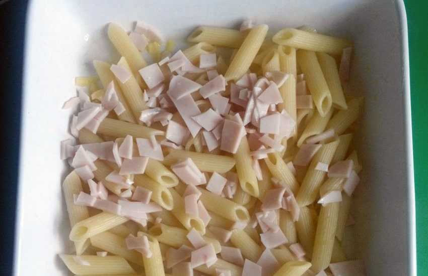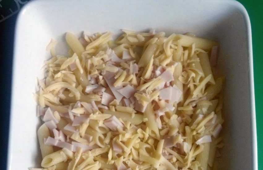 Быстрая макаронная запеканка с колбасой и сыром в духовке