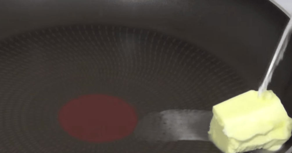 1. Сливочное масло растапливаем на сковороде.