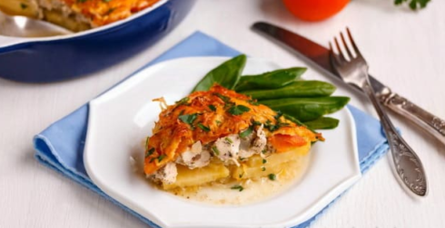 Запеканка из картофеля с курицей и грибами не останется не замеченной на праздничном, семейном ужине.