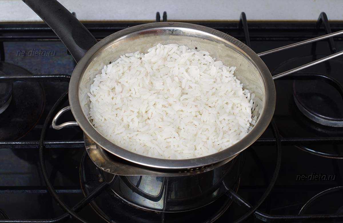 После перекиньте его в кастрюлю, залейте холодной водой, поставьте на плиту. Соотношения крупы и воды — 1:2. В воду киньте соль после кипения, огонь сделайте минимальным, емкость прикройте крышкой. Этот вид риса варится дольше обычного (белого), время его приготовления составляет примерно 40 минут, конкретнее можно посмотреть на упаковке. При такой долгой варке красный рис никогда не разваривается, оставаясь всегда рассыпчатым.