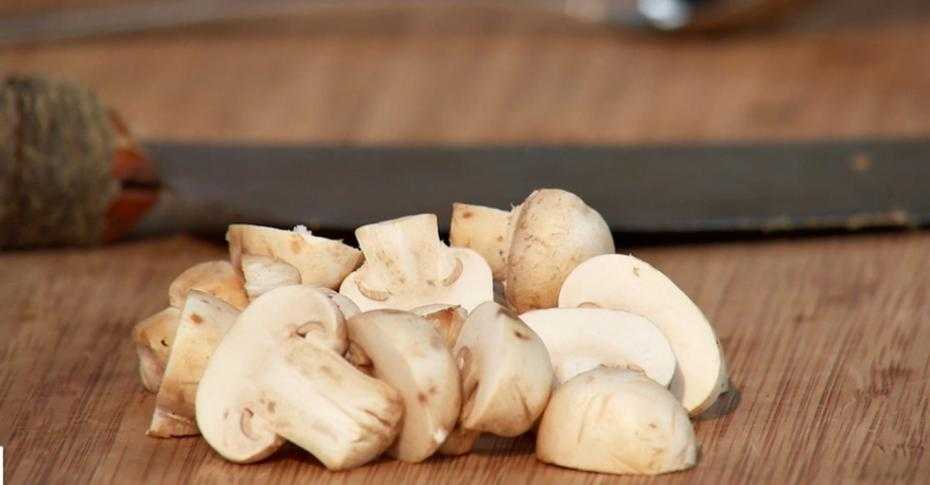 Желательно, чтобы шампиньоны были мелкие или среднего размера. Если грибы крупные, то разделите их ножом на 4 части.